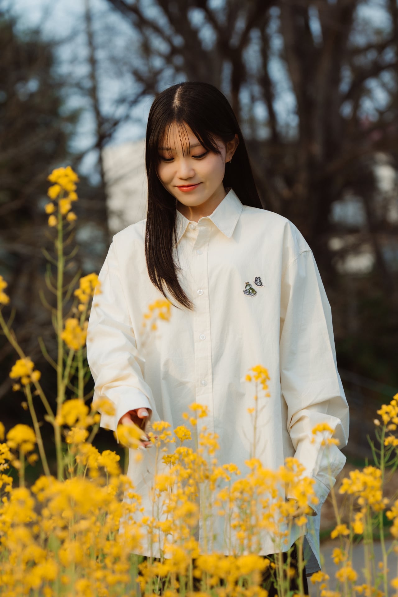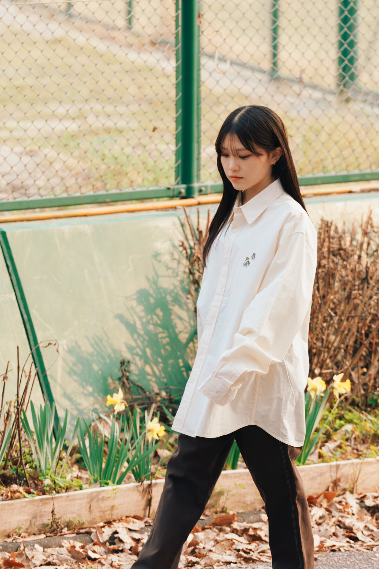 • Story Line Embroidery Shirt – White