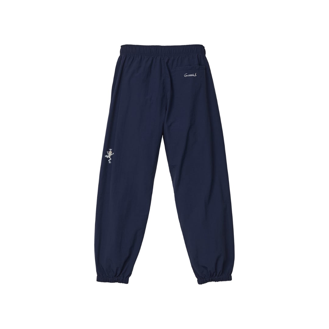 GRATITUDE1を象徴するFROGロゴを繊細でハイクオリティーな刺繍で仕上げた90s風のルーズ&スポーティーなルックのナイロンパンツ
